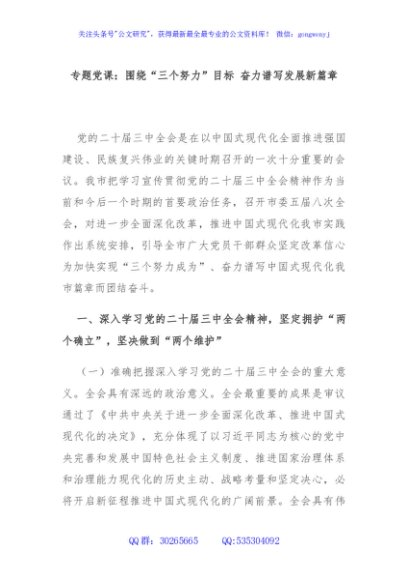 / 专题党课:围绕“三个努力”目标 奋力谱写发展新篇章