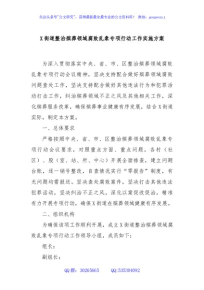 / X街道整治殡葬领域腐败乱象专项行动工作实施方案