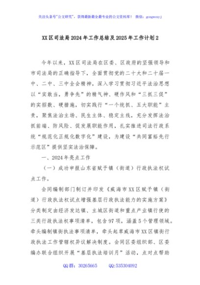 / XX区司法局2024年工作总结及2025年工作计划2