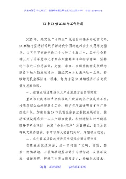 / XX市XX镇2025年工作计划