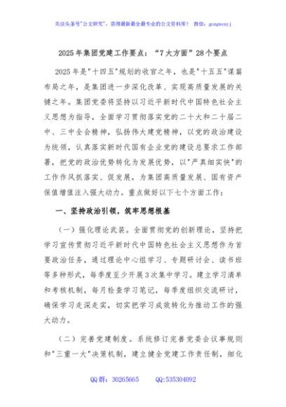 / 2025年集团党建工作要点:“7大方面”28个要点