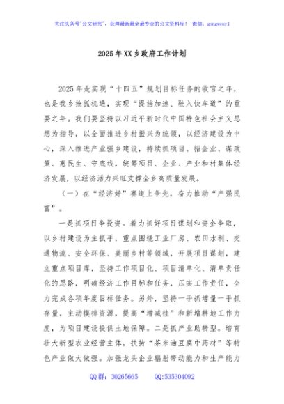 / 2025年XX乡政府工作计划