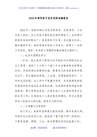 / 2024年领导班子成员述职述廉报告