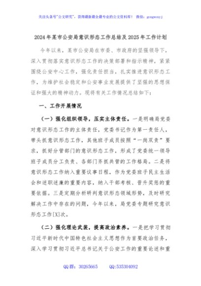 / 2024年某市公安局意识形态工作总结及2025年工作计划