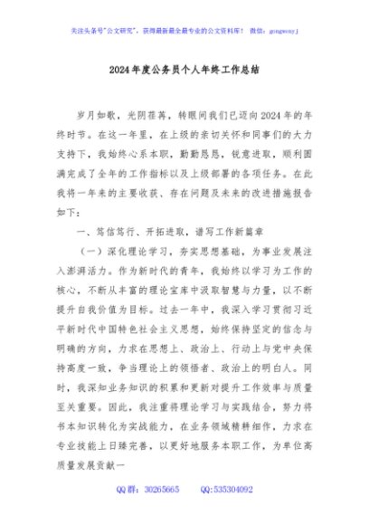 / 2024年度公务员个人年终工作总结