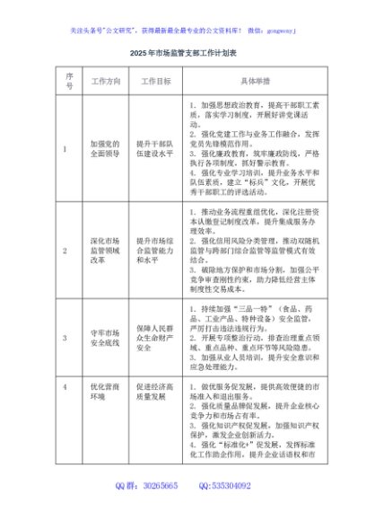 / 2025年市场监管支部工作计划表