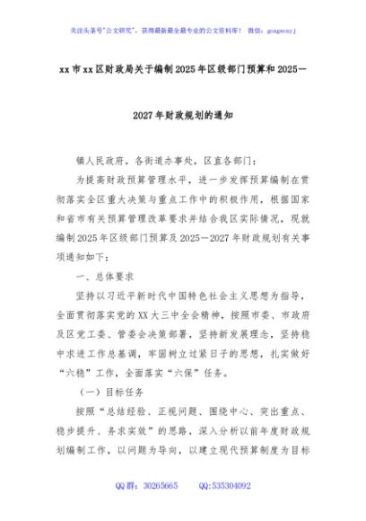 / xx市xx区财政局关于编制2025年区级部门预算和2025-2027年财政规划的通知