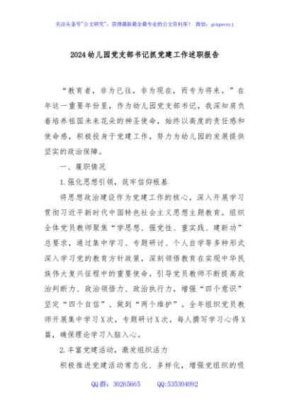 / 2024幼儿园党支部书记抓党建工作述职报告