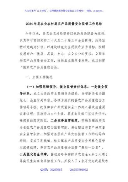 / 2024年县农业农村局农产品质量安全监管工作总结
