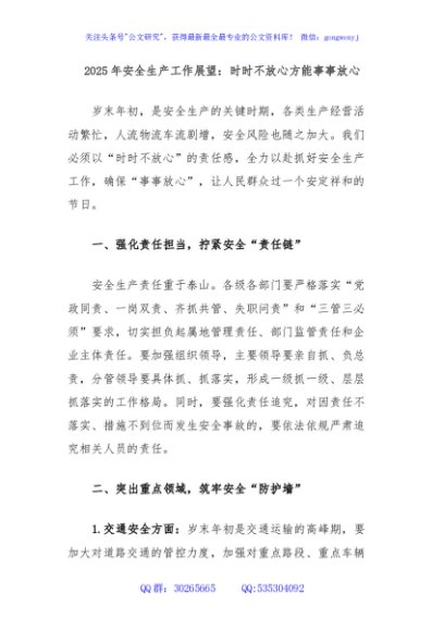 / 2025年安全生产工作展望:时时不放心方能事事放心