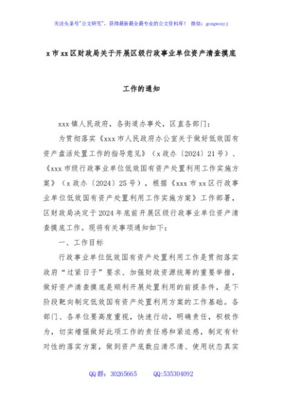 / xx市xx区财政局关于开展区级行政事业单位资产清查摸底工作的通知