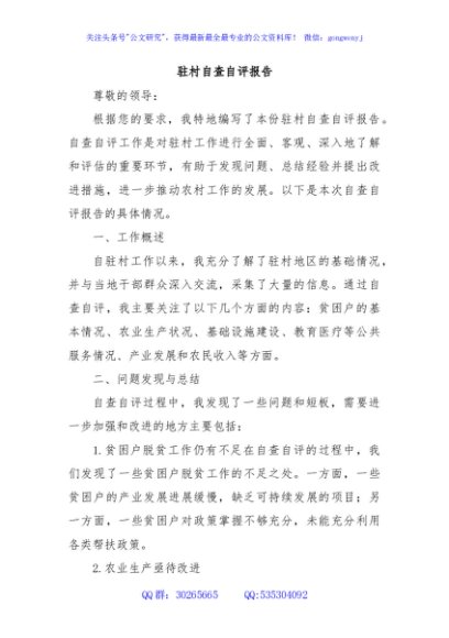 / 驻村自查自评报告