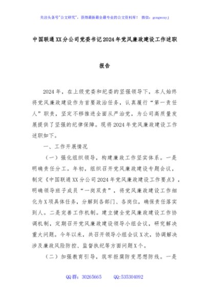 / 中国联通XX分公司党委书记2024年党风廉政建设工作述职报告