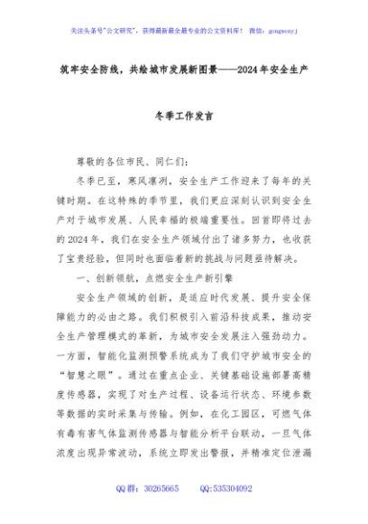 / 筑牢安全防线,共绘城市发展新图景——2024年安全生产冬季工作发言