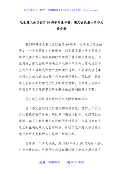 / 纪念遵义会议召开90周年党课讲稿:遵义会议最大的历史性贡献