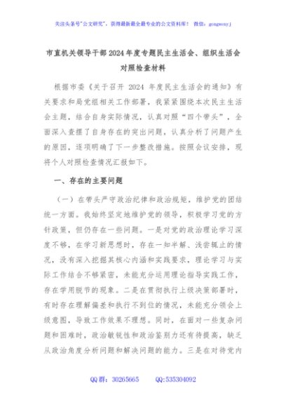 / 市直机关领导干部2024年度专题民主生活会、组织生活会对照检查材料