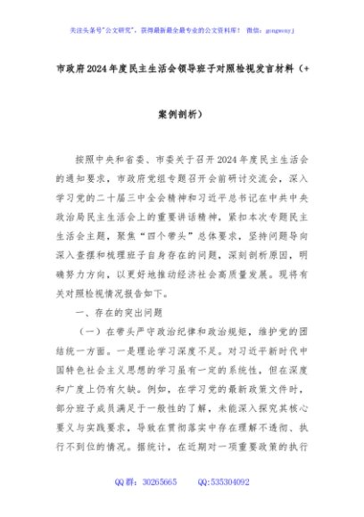 / 市政府2024年度民主生活会领导班子对照检视发言材料(+案例剖析)