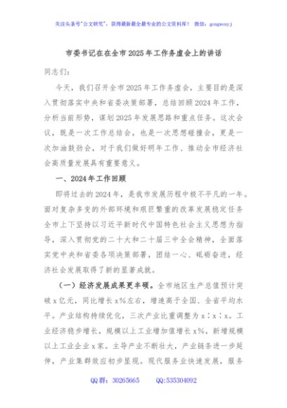 / 市委书记在在全市2025年工作务虚会上的讲话