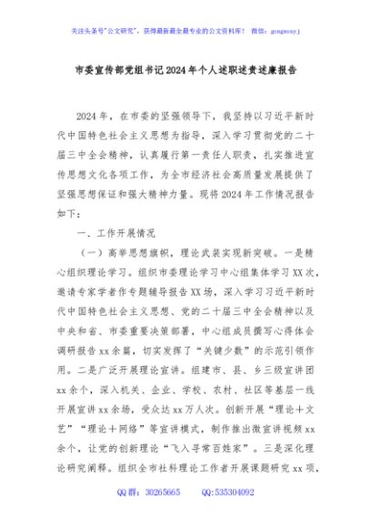 / 市委宣传部党组书记2024年个人述职述责述廉报告