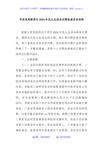 / 市发改局副局长2024年民主生活会对照检查发言材料