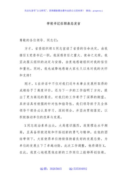 / 学校书记任职表态发言