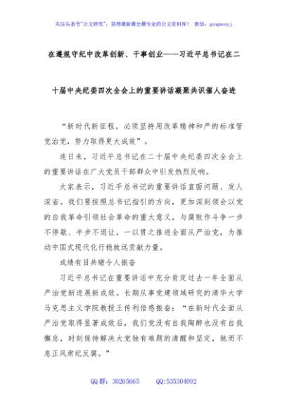 / 在遵规守纪中改革创新、干事创业——习近平总书记在二十届中央纪委四次全会上的重要讲话凝聚共识催人奋进