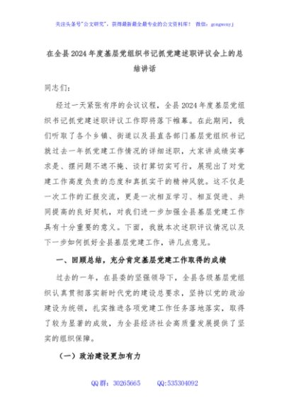 / 在全县2024年度基层党组织书记抓党建述职评议会上的总结讲话