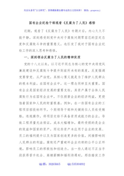 / 国有企业纪检干部观看《反腐为了人民》感悟