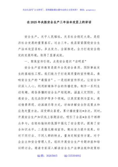 / 在2025年决胜安全生产三年治本攻坚上的讲话