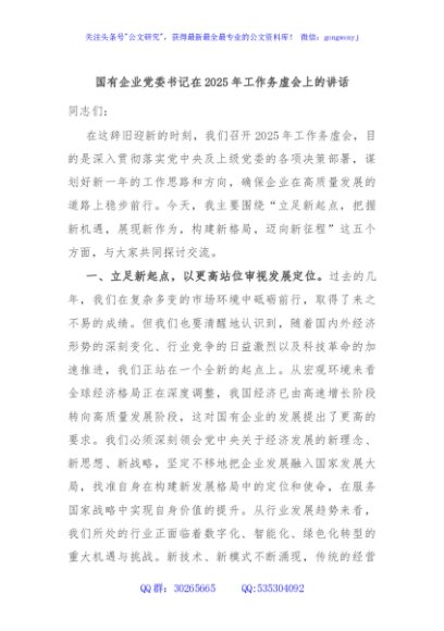 / 国有企业党委书记在2025年工作务虚会上的讲话