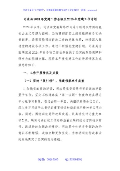 / 司法局2024年党建工作总结及2025年党建工作计划