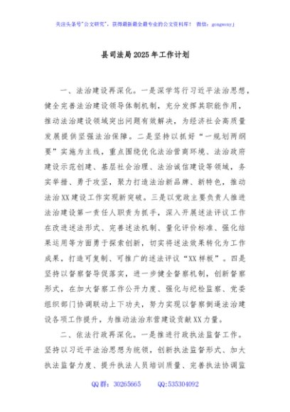/ 县司法局2025年工作计划