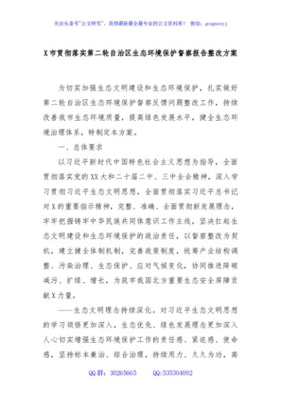 / X市贯彻落实第二轮自治区生态环境保护督察报告整改方案