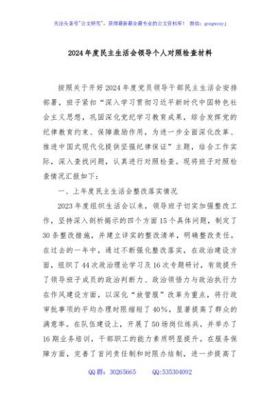 2024年度民主生活会对领导班子及班子成员的意见建议