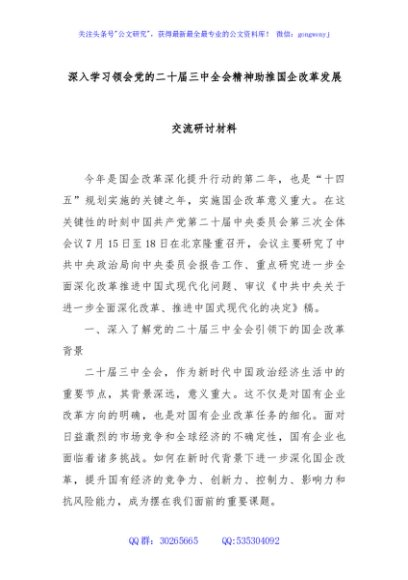 / 深入学习领会党的二十届三中全会精神助推国企改革发展交流研讨材料
