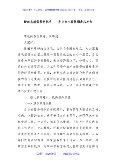 / 新起点新征程新担当——办公室主任就职表态发言