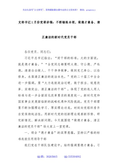 / 支部书记1月份党课讲稿:不断锤炼本领,做德才兼备、清正廉洁的新时代党员干部