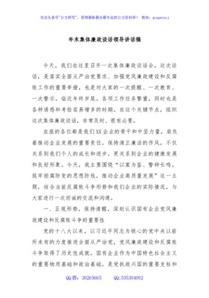 / 年末集体廉政谈话领导讲话稿