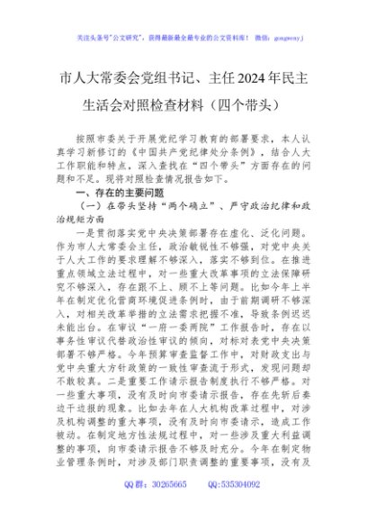 / 市人大常委会党组书记、主任2024年民主生活会对照检查材料