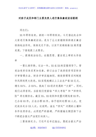 / 对班子成员和部门主要负责人进行集体廉政谈话提纲