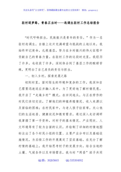 / 驻村逐梦路,青春正当时——选调生驻村工作总结报告
