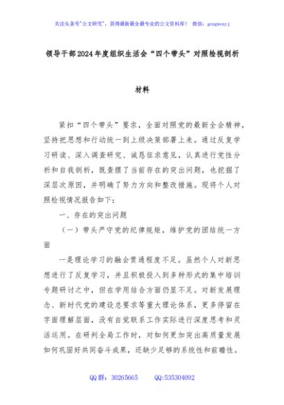 / 领导干部2024年度组织生活会“四个带头”对照检视剖析材料