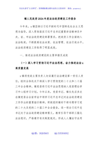 / 镇人民政府2024年度法治政府建设工作报告