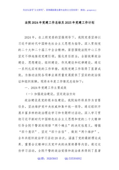 / 法院2024年党建工作总结及2025年党建工作计划