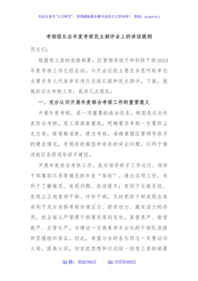 / 考核组长在年度考核民主测评会上的讲话提纲