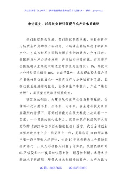 / 申论范文:以科技创新引领现代化产业体系建设