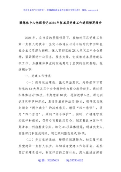 / 融媒体中心党组书记2024年抓基层党建工作述职情况报告