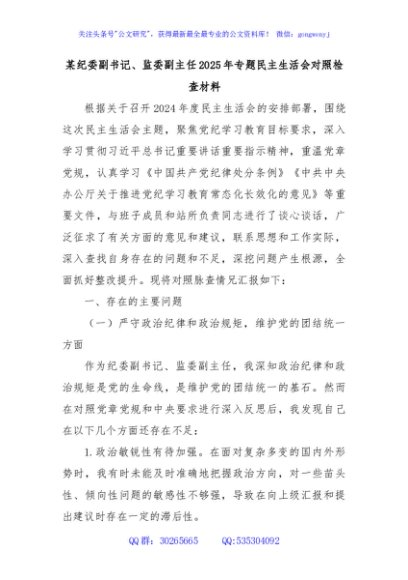 / 某纪委副书记、监委副主任2025年专题民主生活会对照检查材料