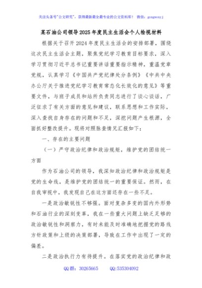 / 某石油公司领导2025年度民主生活会个人检视材料