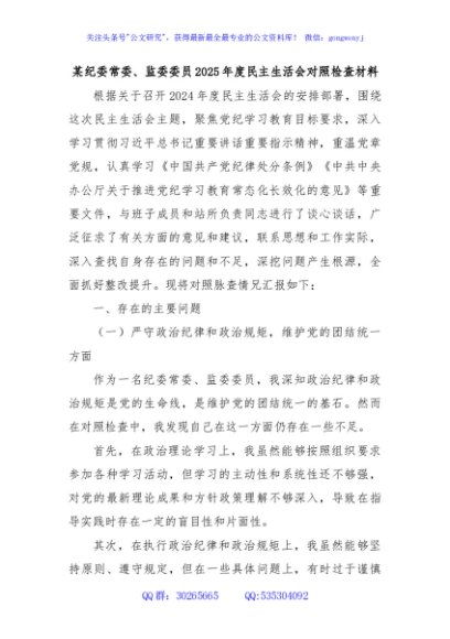 / 某纪委常委、监委委员2025年度民主生活会对照检查材料